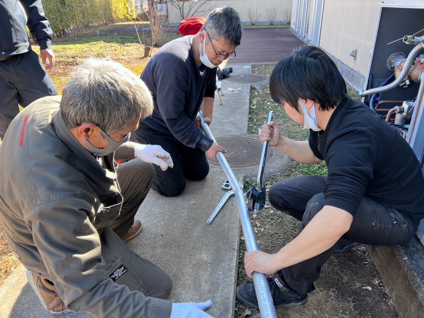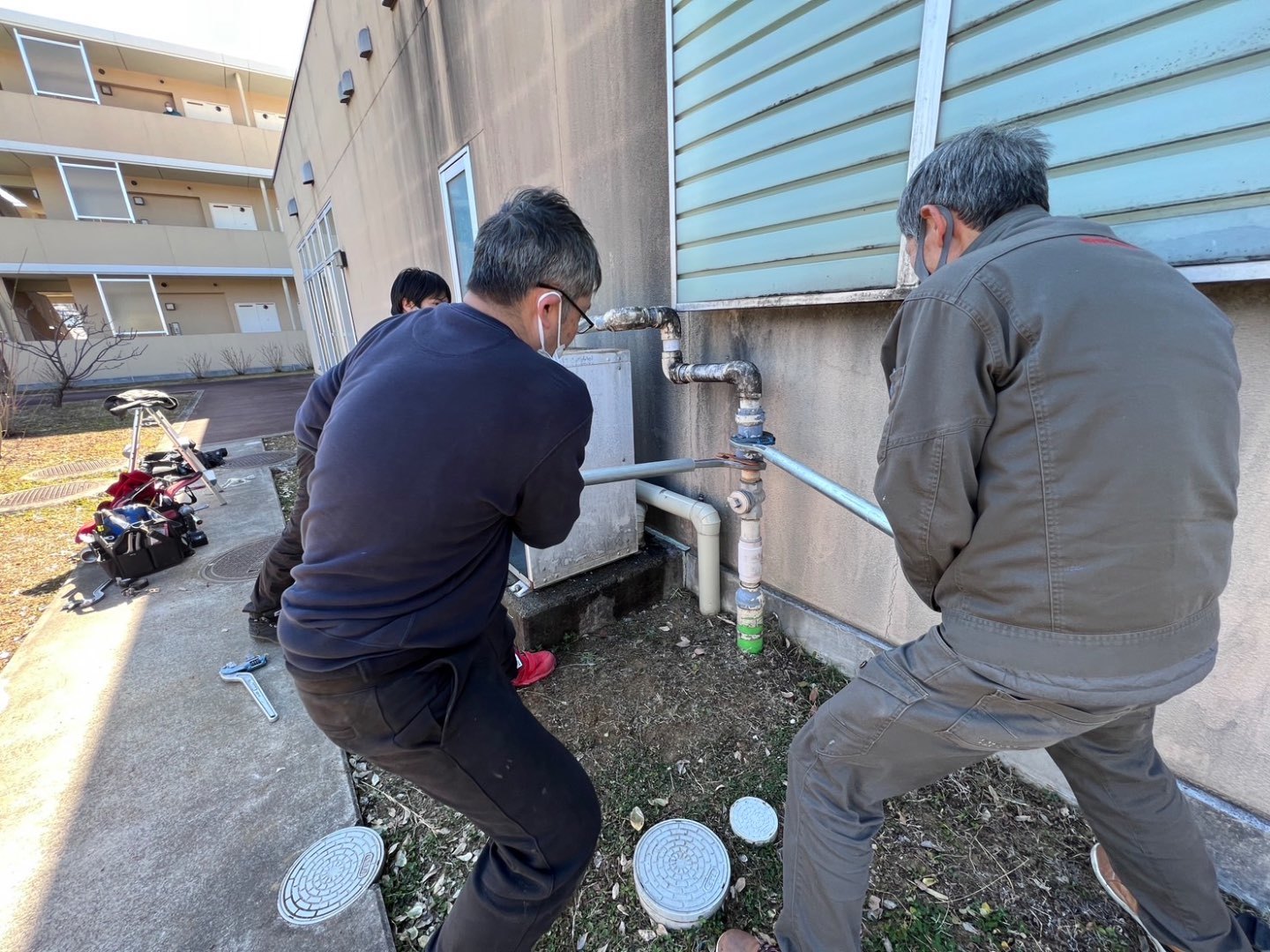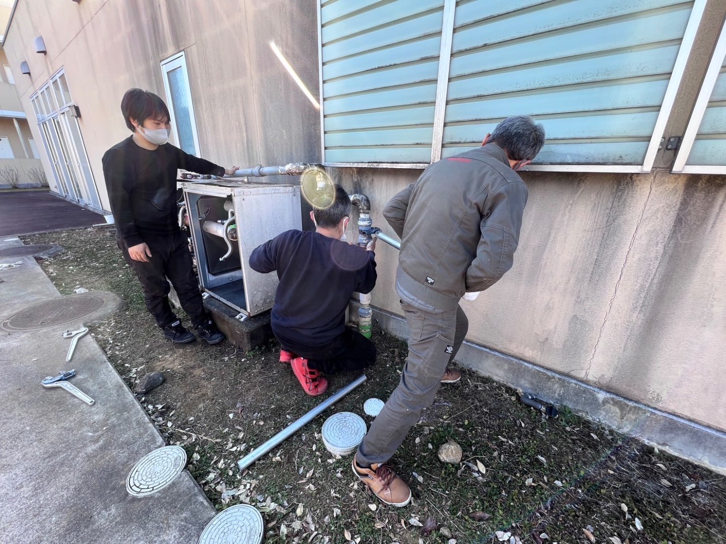 老人介護施設様の大浴場専用のガス業務用給湯器の交換工事をみんなで