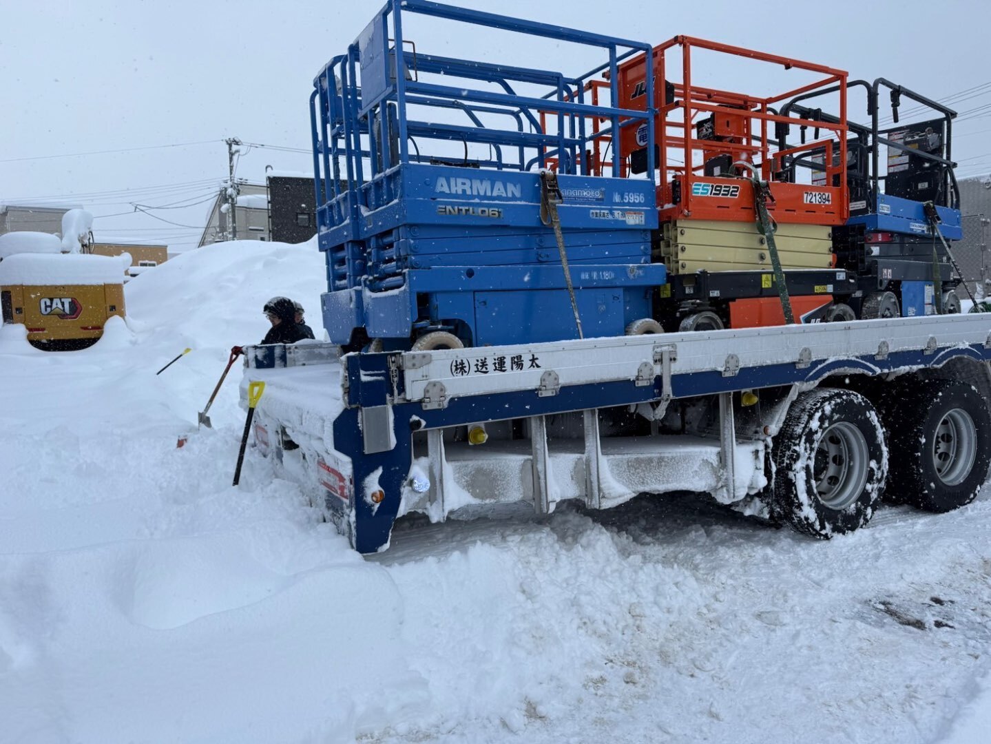 スコップを持って一緒に雪をかき、通路をつくり、少しずつ、高所作業車が入れるスペースを確保していきます。誰かに頼まれたわけでもなく、「みんなでやろう」という空気が自然と生まれ、寒さの中でも、現場にはあたたかい雰囲気が流れていました。