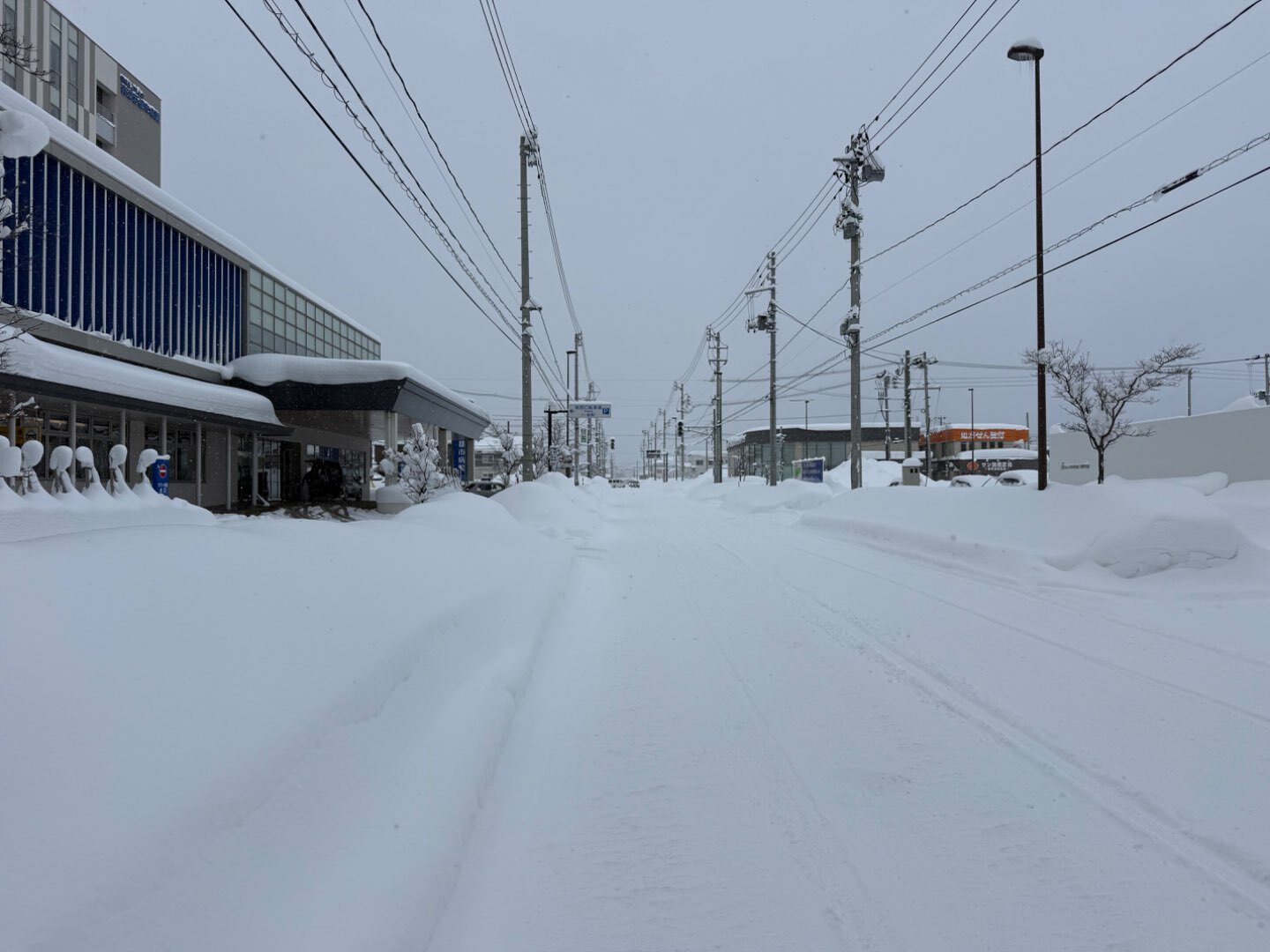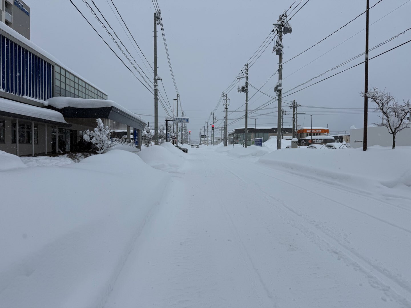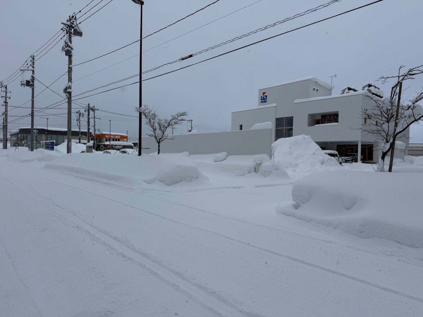 道路は高く積もった雪に挟まれ、見慣れた景色もまるで別世界のようです。視界も限られ、ハンドルを握る手にも自然と力が入ります。「無事に現場にたどり着けるだろうか」そんな気持ちを抱えながらも、安全第一で、慎重に現地へ向かいました。