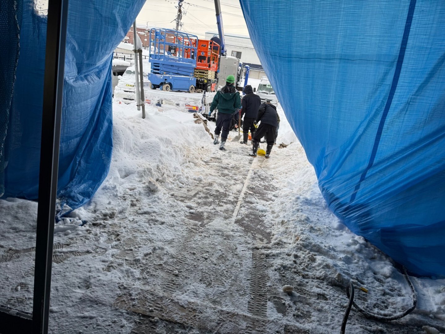 そんな中、現地のさまざまな業者さんが、自然と集まり、雪かきを手伝ってくださいました。