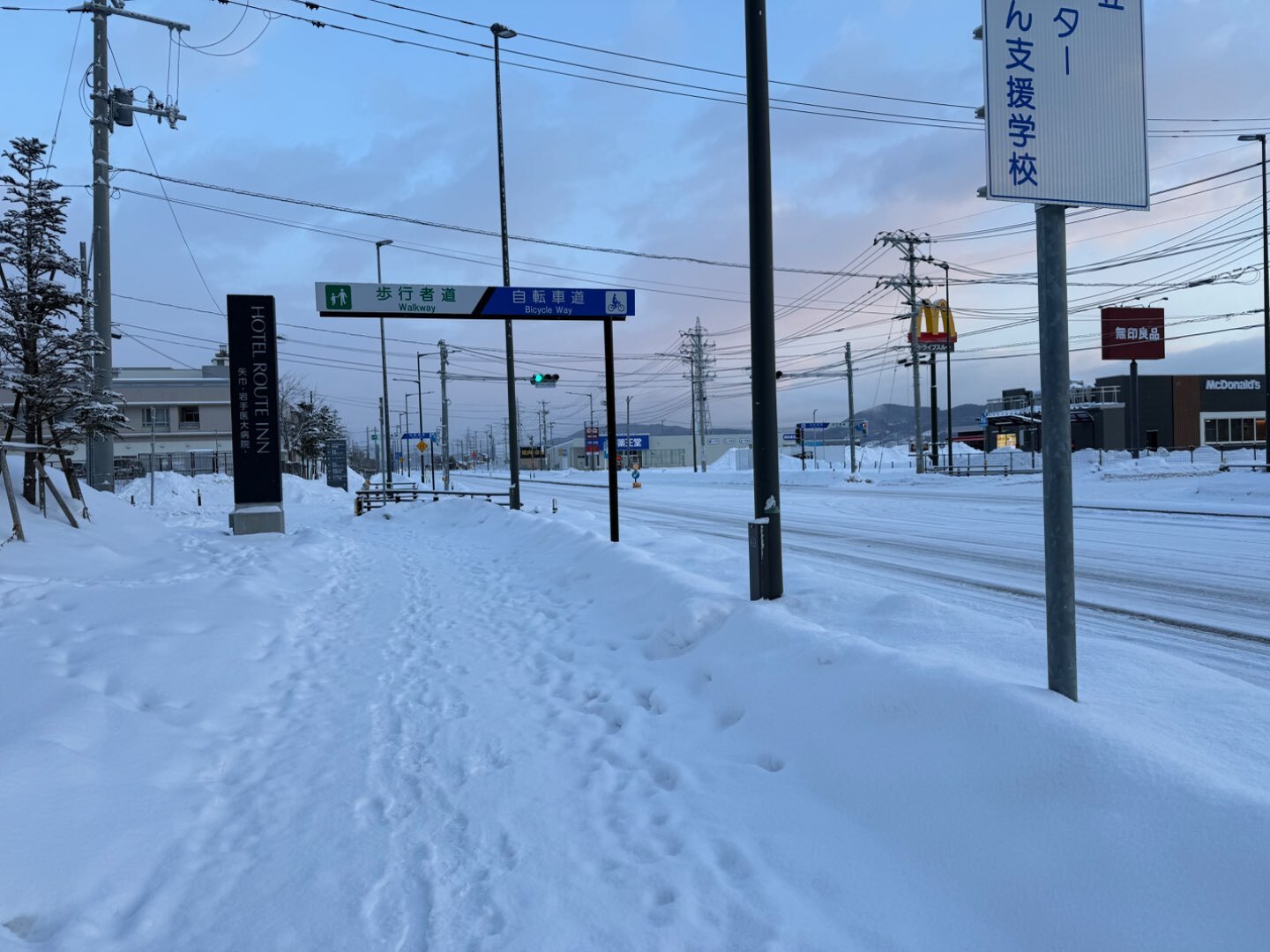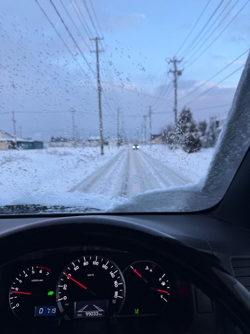 盛岡の朝は、まさに冬そのもの。雪に覆われた街並みは静かで、空気は澄み切っていて、深く息を吸うと胸の奥まで冷たい空気が入ってくるのがわかります。