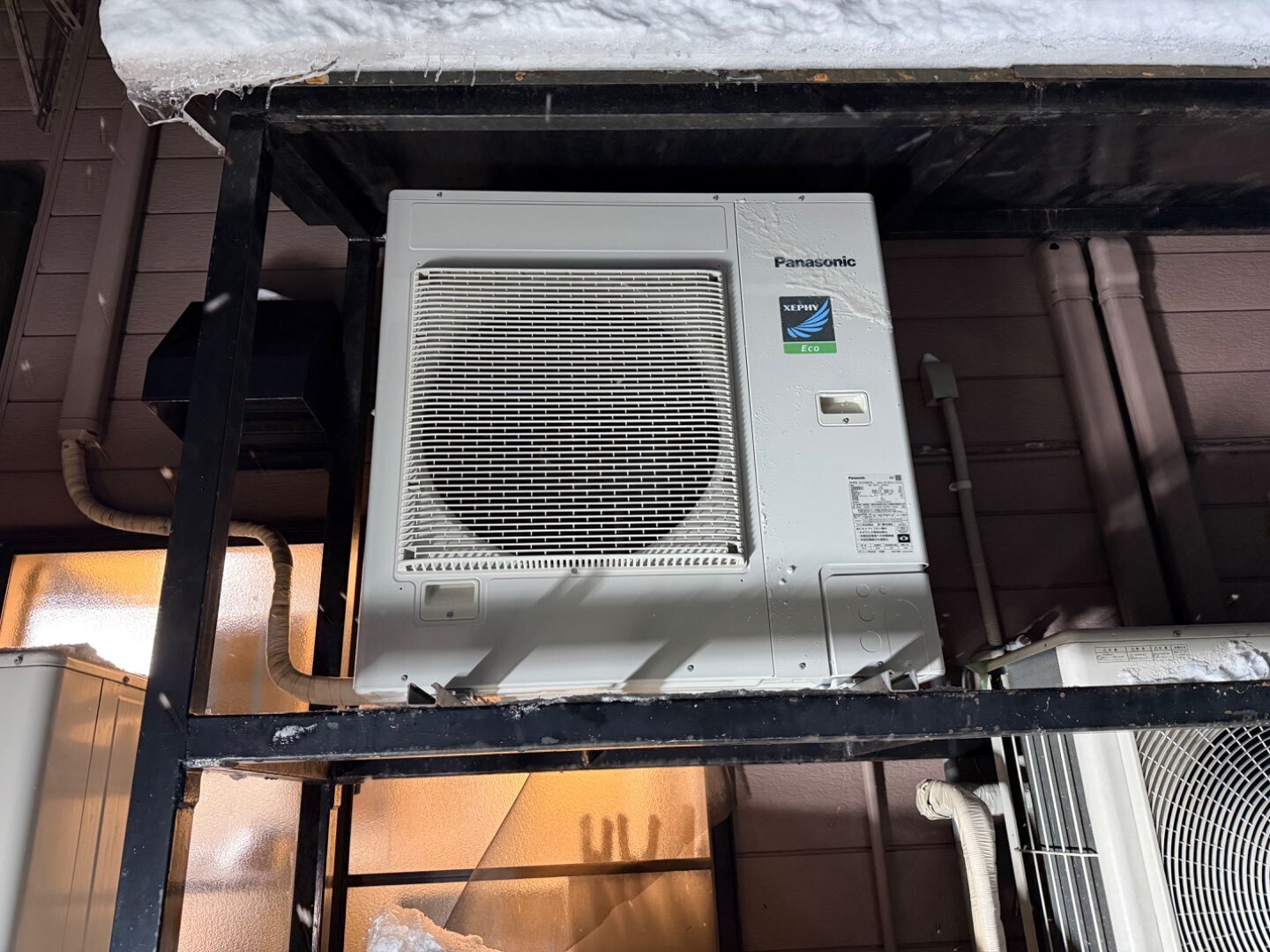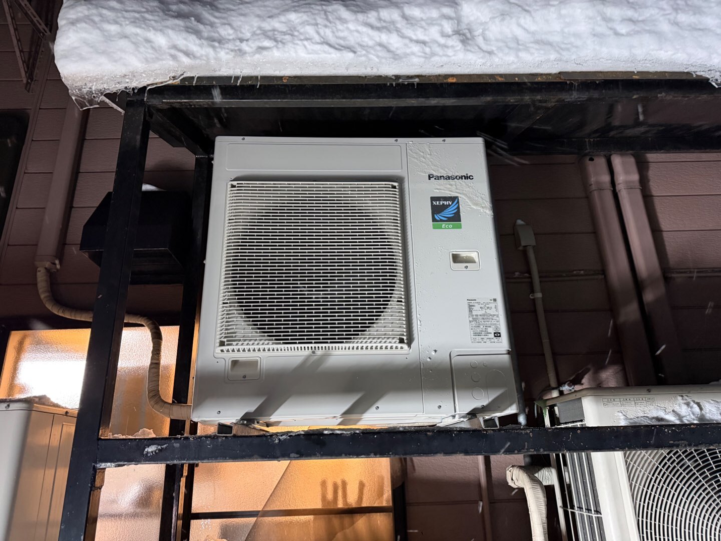 今回のような豪雪地域では、室外機まわりの施工も非常に重要です。